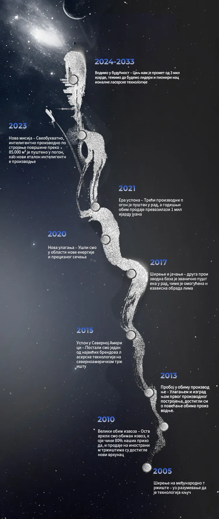 Предузеће GWEIKE Tech Co. Ltd. основано је 2004. и бави се високом технологијом, уз интеграцију истраживања и развоја, производње, продаје и сервиса. Посвећени смо иновацијама и усавршавању ласерске опреме, обезбеђивању високог квалитета и интелигентних ласерских решења за све услове, клијентима широм света. Предузеће се дичи производњом лимова по високим стандардима, ефикасно склопљеним производним линијама заснованим на научном истраживању и широком, системском сервисном мрежом. Своје производе нудимо у преко 180 земаља и региона широм света.