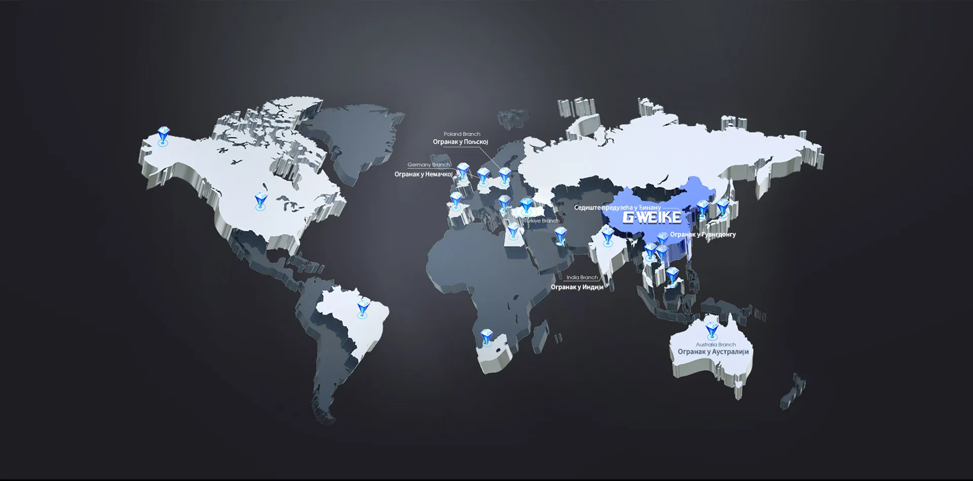 Предузеће GWEIKE Tech Co. Ltd. основано је 2004. и бави се високом технологијом, уз интеграцију истраживања и развоја, производње, продаје и сервиса. Посвећени смо иновацијама и усавршавању ласерске опреме, обезбеђивању високог квалитета и интелигентних ласерских решења за све услове, клијентима широм света. Предузеће се дичи производњом лимова по високим стандардима, ефикасно склопљеним производним линијама заснованим на научном истраживању и широком, системском сервисном мрежом. Своје производе нудимо у преко 180 земаља и региона широм света.